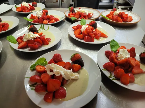 Cuisine traditionnelle française, (cassoulet, pigeons, Gratins Dauphinois...). Woks Thaï (végétariens ou poulet), poissons et viandes. Cuisine provençale (pissaladière, poivrons grillés). Rognons de veau, pavé de Salers.