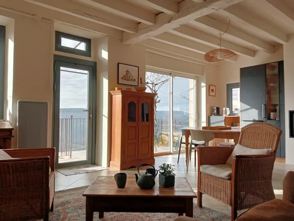 Notre maison en pierre, située sur les hauteurs, entre vignes, falaises et le causse vous séduira par sa vue magnifique et son environnement agréable.