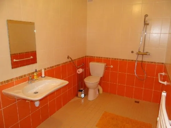 Au rez-de-chaussée, véranda/hall d'entrée, salle de jeux, chambre et sanitaire pour personne handicapée, TV ..., un coin cuisine. Le cellier dispose d'un lave-linge, d'un sèche-linge. Terrasse extérieure et terrain de jeux, grand parking privé.