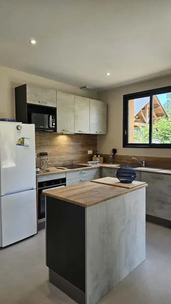 - 1 cuisine entièrement équipée (four, plaques, micro-ondes, cafetière, lave-vaisselle, ..) pour préparer vos repas comme à la maison.