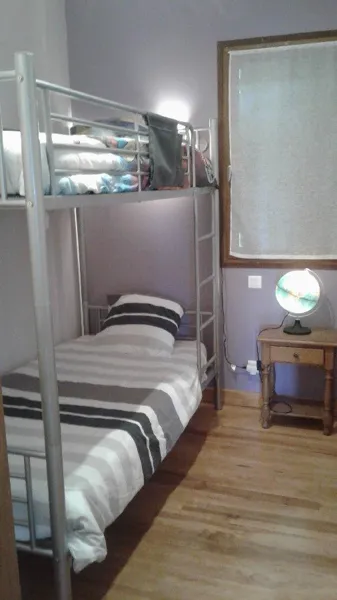 1 chambre avec 1 lit en 140, 1 cabine avec 1 lit superposé 2x90, salle d'eau, WC indépendant, cuisine entièrement équipée ouverte sur le séjour. Séjour comprenant un canapé convertible, TV, cheminée. Lave-vaisselle, lave-linge, chauffage électrique, terrain privatif non clos, salon de jardin.