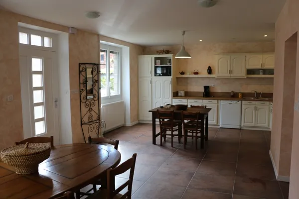 - une grande pièce à vivre cuisine, salon séjour (grande table, 1 canapé et 3 fauteuils TV),