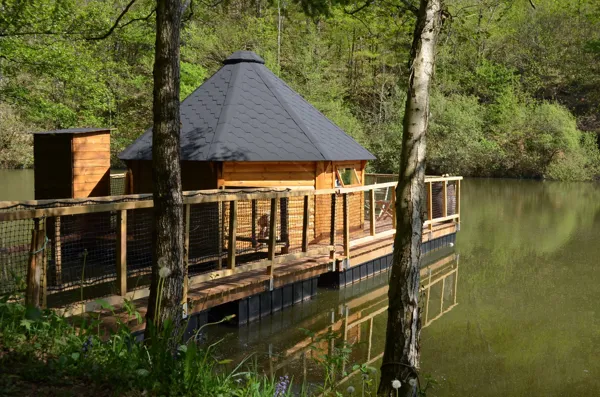 Venez passer une nuit insolite au bord d'un lac dans une cabane flottante ou une cabane perchée.