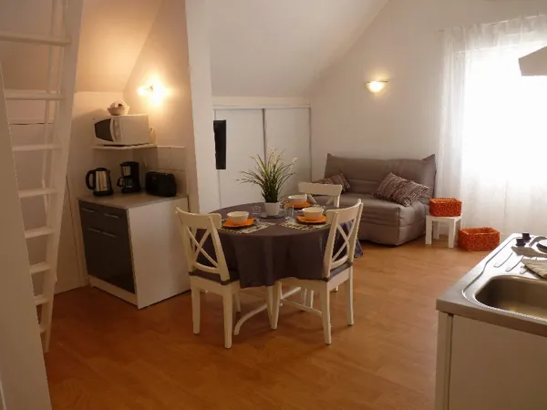 Dans maison contemporaine, un studio jusqu'à 5 pers équipé de micro-ondes, frigo, cafetières, bouilloire