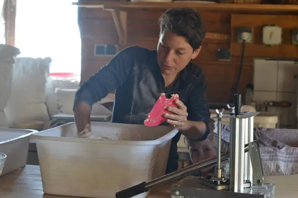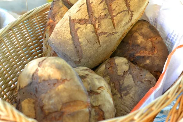 Sarah et Ben boulangent ensuite leurs farines, au levain naturel et fermentation longue, et cuisent les pâtons dans le four à bois de la ferme. Ils confectionnent ainsi plusieurs sortes de pains, des pizzas fermières, des fougasses à l'ail et aux herbes, des "étoiles de Nuces", petites spécialités sucrées de leur invention ou encore des mousses de pois chiche à l'estragon.