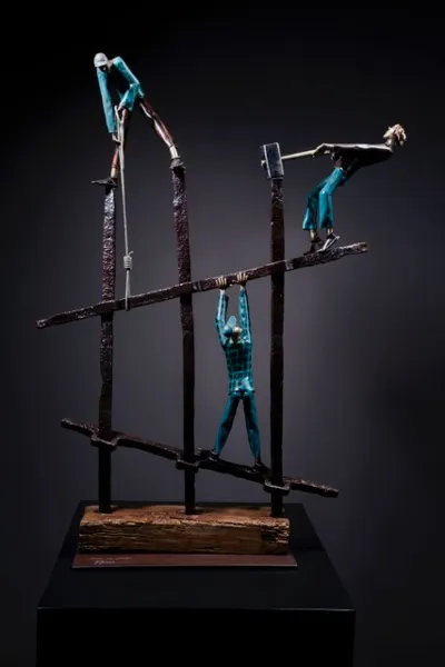 " Je travaille le tube de cuivre et le transforme en personnages mis dans des situations poétique et humoristique."