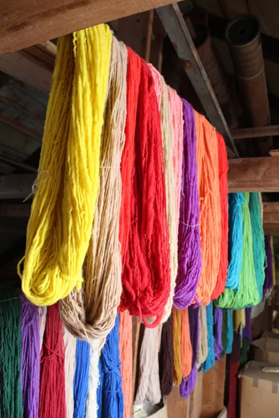 Métier à tisser. La laine est une matière noble qui peut être tissée, tricotée et utilisée en ameublement.