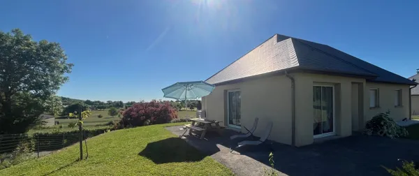 Ce gîte de plain-pied, moderne et climatisé, peut héberger jusqu'à 5 personnes. Il dispose d'une grande pièce à vivre lumineuse, de 3 chambres indépendantes, d'un jardin avec terrasse et d'un garage fermé en sous-sol pour voitures, motos ou vélos.