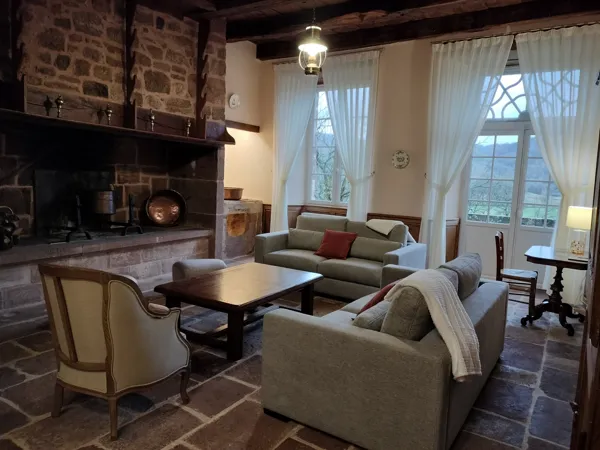 Gîte mitoyen à une résidence secondaire très peu occupée, 3 niveaux, à la campagne. 4 chambres ( 2x160, 4x90), 3 salles d'eau, séjour/cuisine (lave-linge, lave-vaisselle), 1 salon au rez de chaussée (2 canapés, fauteuil et poufs, télévision, jeux de société, cheminée), 1 salon au 2ème étage (canapé-lit), buanderie (sèche-linge), possibilité 2 lits d'appoint et 2 lits bébé, chauffage central.