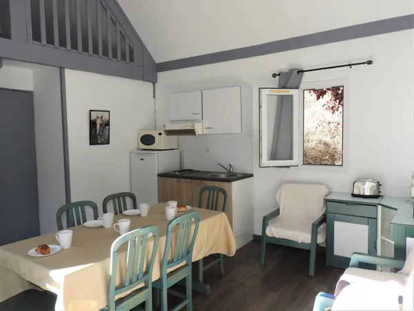 19 casitas rurales en plena naturaleza. Actividades en julio y agosto. Piscina de 70 m² calentada del 15/06 al 15/09. Comercios a 1 km.