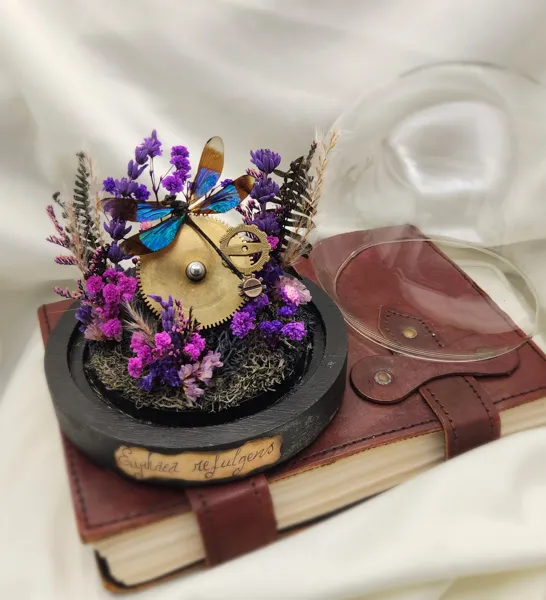 Ici nous proposons nos creations insolites mêlant insectes naturalisés et plantes eternelles ou encore des bijoux féeriques avec les fleurs de notre jardin !