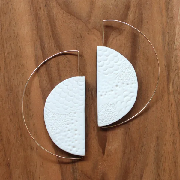 Bijoux contemporains en céramique et métaux précieux, faits artisanalement dans la région.