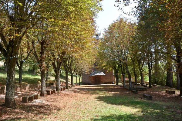 Dans le parc arboré de la chapelle de Foncourrieu à proximité du centre du village de Marcillac.