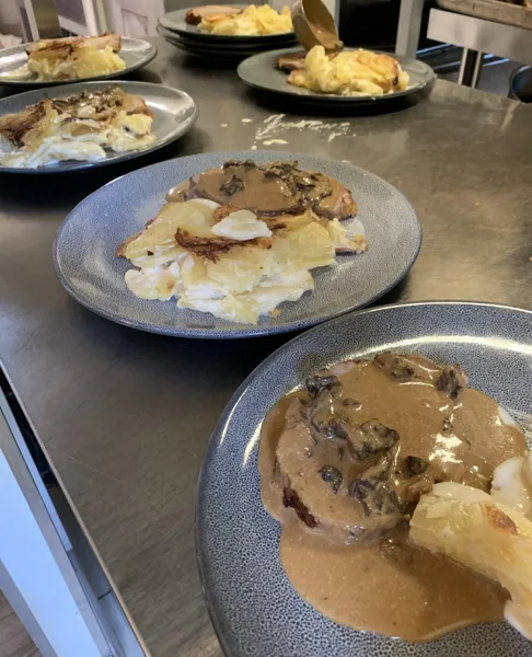 Accueil de groupes, mariage, cousinade, randonneurs, cyclistes, motards. Accueil d'évènement sportif, stade et terrain de pétanque et de quilles à disposition. Restaurant, pizzeria, Bar licence IV capacité assise 98 personnes.