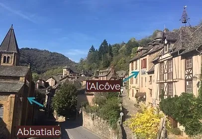 Situées au deuxième étage de l'Atelier d'Enlumunure Médiévale de Valérie et accessibles par la rue Emile Roudié, venez profiter d'une vue exceptionnelle sur l'Abbatiale Saint Foy de Conques.