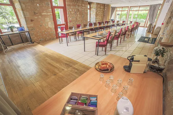 Une multitude d'espaces seront à votre disposition pour faciliter l'organisation de votre évènement : huit salles de réunion entièrement équipées, deux salles de restaurant avec terrasse, une esplanade semi-couverte pour les cocktails, un chapiteau de réception de 300m², un bar licence IV, un grand parking privé et sécurisé, un parc aventure avec parcours accrobranche et activités de plein air.