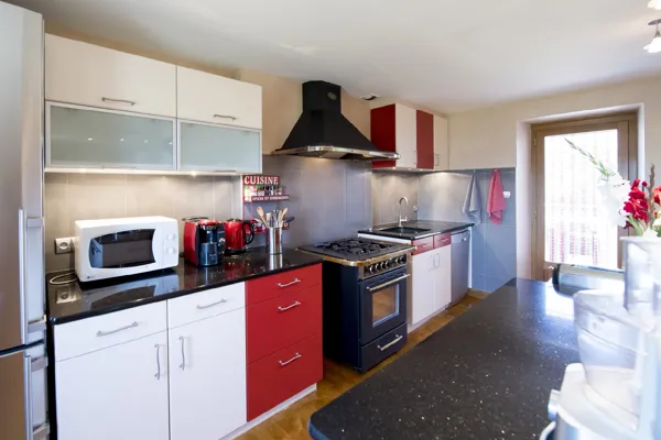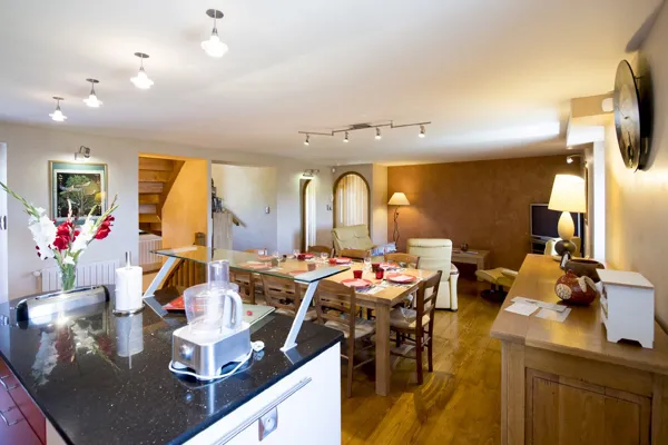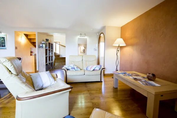 Cuisine ouverte sur salon / séjour (40 m²) et terrasse (9 m²) équipée lave-vaisselle, micro-ondes, frigo-congélateur, télévision couleur, box Wifi par fibre, 4 chambres ( 1 avec lit de 140, 1 avec lit de 160, 1 avec 2 lits de 90 et la dernière avec 2 lits de 90 et 1 lit de 140) 1 salle d'eau avec douche hydrojet, WC indépendant, 1 salle d'eau avec WC. Lit bébé et chaise haute.
