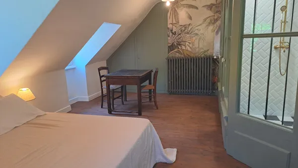 Vous pourrez profiter de la terrasse à votre guise, d’un petit réfrigérateur et d’un micro-ondes pour vos envies de liberté. Le matin, un petit-déjeuner bio, généreux et fait maison vous attend : miel de nos ruches, œufs de nos poules, confitures maison et du bon pain bien chaud...