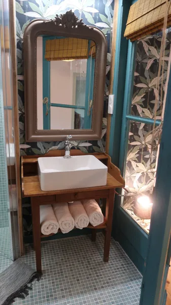 Rénovée avec des matériaux anciens et beaucoup d’âme, notre maison abrite deux chambres spacieuses, chacune avec salle de bain privative et coin repas. Une atmosphère simple et élégante, où chaque détail raconte une histoire.