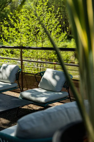 Situé dans un ancien moulin du XVIIIe siècle, l'hôtel s'organise sur deux étages dans un écrin de verdure. Les chambres mêlent confort contemporain et charme authentique. Au pied du moulin s'écoule la rivière, à admirer en toutes saisons depuis balcons et terrasses. Le charme de la pierre et du schiste s'accordent parfaitement à l'environnement naturel alentour.