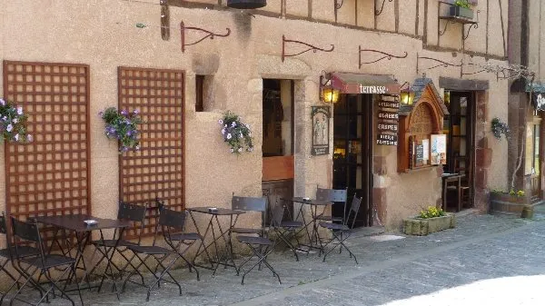 Café - Restaurant - Crêperie - Glacier - Au coeur du village médiéval, face à l'abbatiale de Conques.