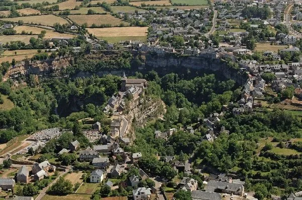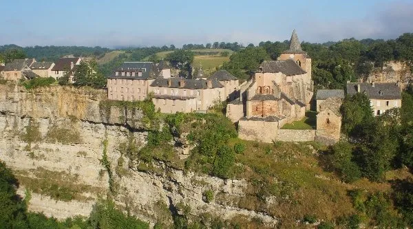 L'église Sainte Fauste est édifiée à l'extrémité d'un éperon rocheux qui domine, d'une hauteur vertigineuse, le cours du Dourdou qui décrit, à cet endroit, une large boucle. Aussi l'impression créée sur les hommes de son temps devait-elle être saisissante.